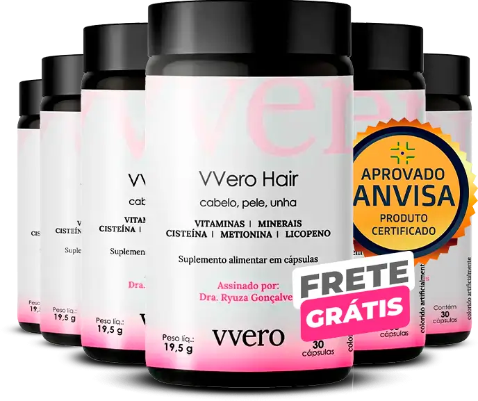 VVero Hair transforma a maneira como você cuida da sua beleza. A nossa fórmula americana conta com 10 nutrientes naturais (Zinco, Biotina, Vitaminas A, C, B6, B12, E, Ácido fólico, Ferro, Riboflavina e Selênio) que trabalham em harmonia na proteção de danos causados pelos radicais livres, melhoram o funcionamento do sistema imune e contribui para a manutenção do cabelo.