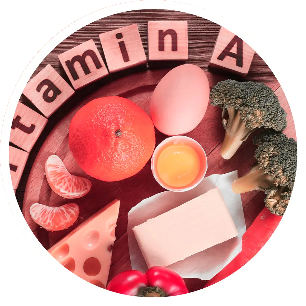 A vitamina A estimula a produção de fibras de colágeno, enquanto a vitamina C é crucial para a formação de hidroxiprolina e hidroxilisina, que ligam as moléculas de colágeno, resultando em uma pele mais elástica e firme.